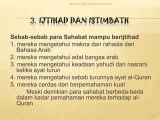 Jika ada beberapa ayat yang dipandang sulit mereka bertanya langsung kepada Rasulallah dan Rasul pun menjelaskannya. Kajian metodologi tafsir yang berkaitan dengan sebab-sebab perbedaan penafsiran para ulama mencakup dua hal yaitu. Sabtu 1 Jan 2011 - Kategori.